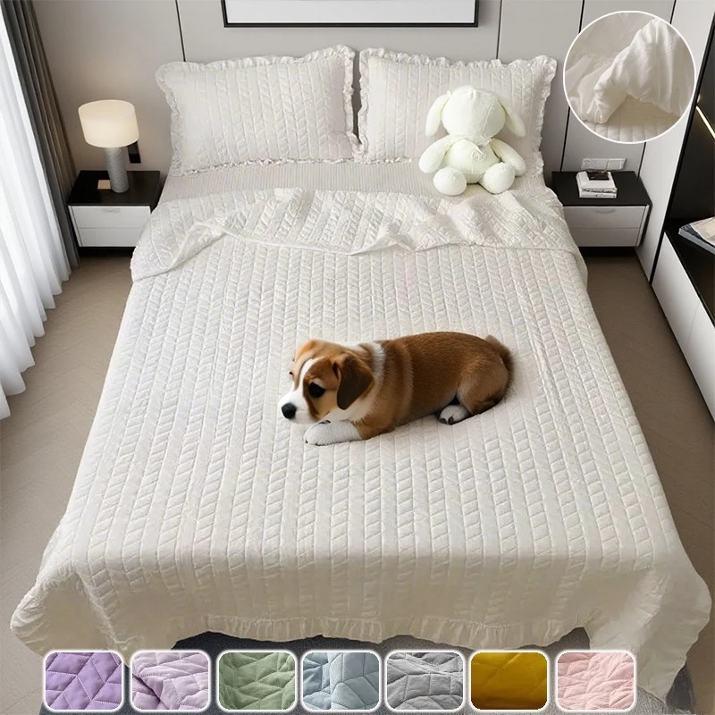 Conjunto de cama com babados brancos, colcha macia para ar condicionado, leve, respirável, fina, acolchoada, cobertor de verão ント