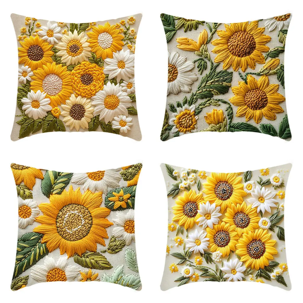 45x45cm retro girassol impresso fronha primavera verão margarida sol flor fronha sol flor casa sofá carro sushion capa