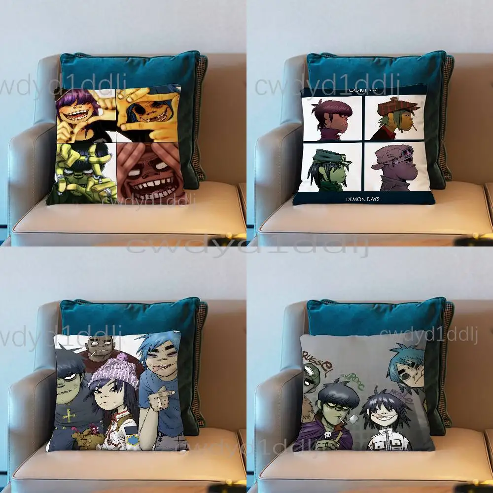 Banda de música gorillaz demônio dias fronha impressão poliéster capa de almofada decoração fronha capa carro zíper 45*45cm