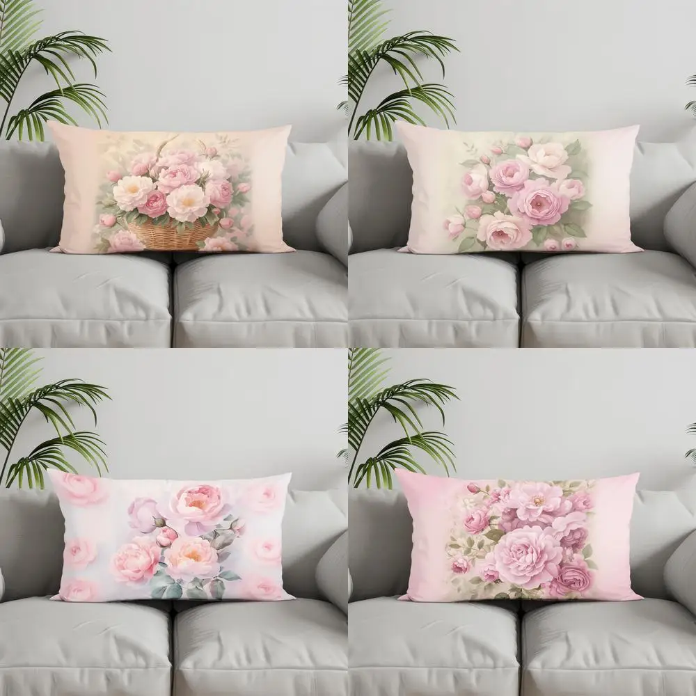 Decoração de casa peônias rosa em cesta de vime adequada para sofá quarto capa de almofada de carro almofada traseira retangular