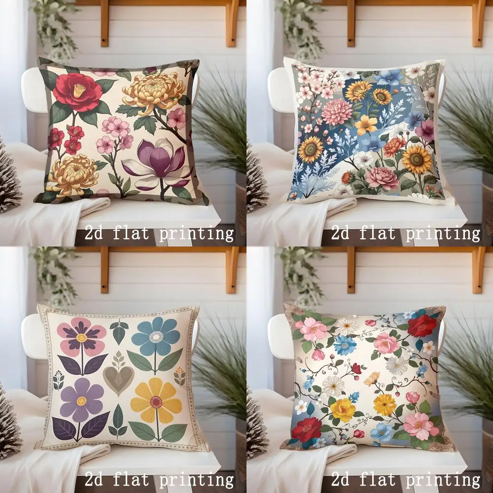 Capa de Almofada Floral: Capa de Almofada com Padrão de Flores Vermelhas, Rosas e Amarelas, Adequada para Sofá, Quarto e Carro