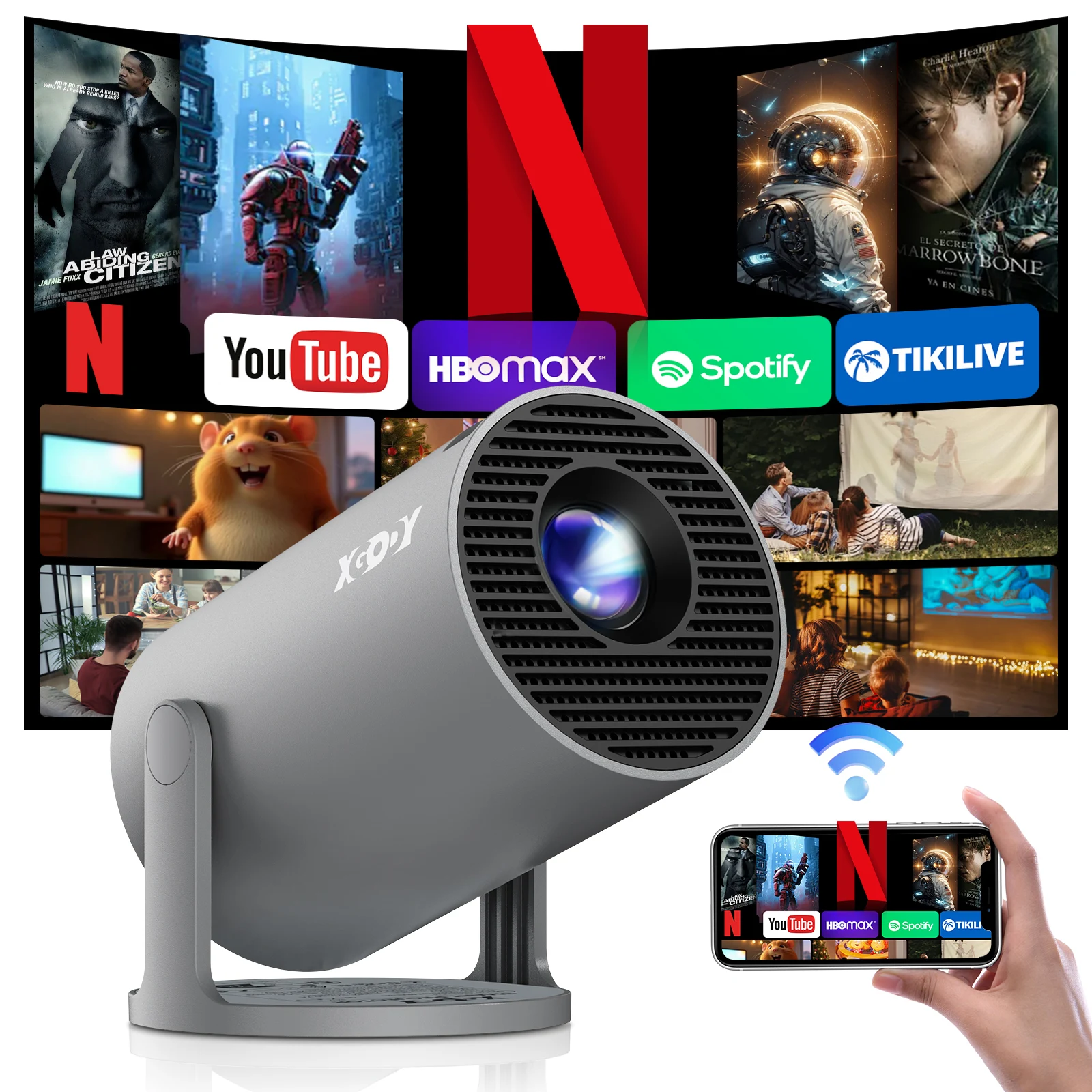 Xgody projetor 4k 260 ansi curto lance mini projetores portáteis android beamer nativo 720p duplo wifi6 bt5.4 home theater