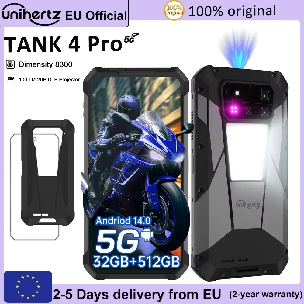 Unihertz 8849 Tank 4 Pro Projetor Robusto Smartphone 36G + 1TB 5G Al Dimensity 8300 3K 6,73 "AMOLED Android 14 11600mAh Bateria