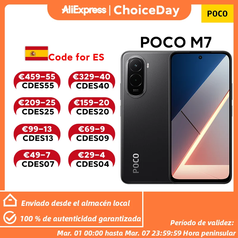 Versão global Smartphone POCO M7 Potente processador Snapdragon 685 Ecrã FHD+ de 6,9” e 144 Hz Câmara dupla com IA de 50 MP Bateria grande de 7000 mAh (típica) Carregamento rápido de 33 W Xiaomi HyperOS 2 NFC Telemóvel Xiaomi