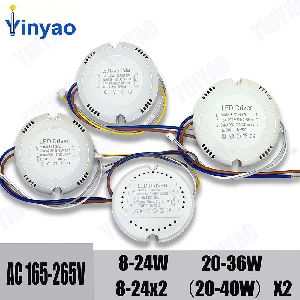 Driver de LED de isolamento de entrada CA 85-265V com transformador LED de 3 cores (25-36W) (36-50W) × 2 para lustre regulável que muda de cor