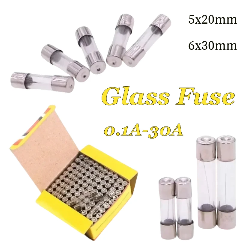 Tubo de seguro de sopro rápido 0.1A -30A VIDRO Fusível de sopro rápido 5*20 / 6*30MM 250V