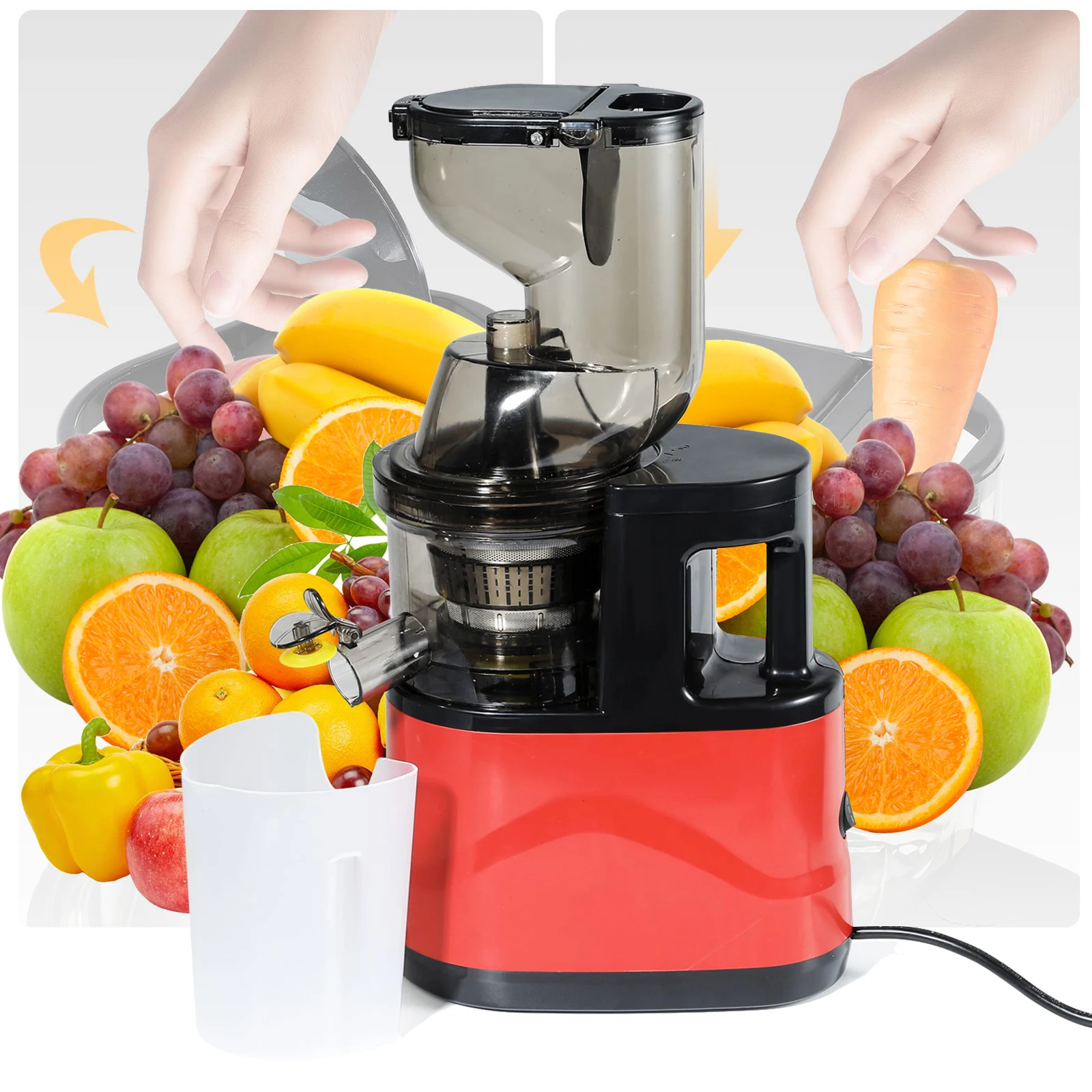 Espremedor de imprensa fria de 500 W, com rampa de alimentação de 80 mm, adequado para frutas e legumes inteiros, alto rendimento de suco, espremedor de mastigação lenta sem BPA