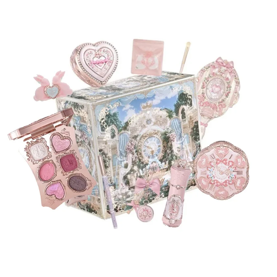 Conjunto de Maquiagem Flowerknows Garden Collection com Creme Labial, Blush, CC Cream Air Cushion, Base Líquida e Paleta de Sombras para Olhos 10 peças
