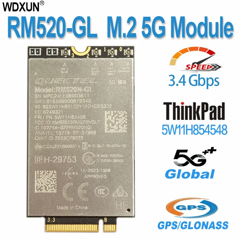 Módulo Quectel RM520N-GL 5G Sub-6 GHz NR M.2 RM520NGLAA-M20-SGASA para Uso Global, Não Pode Ser Usado em Laptop