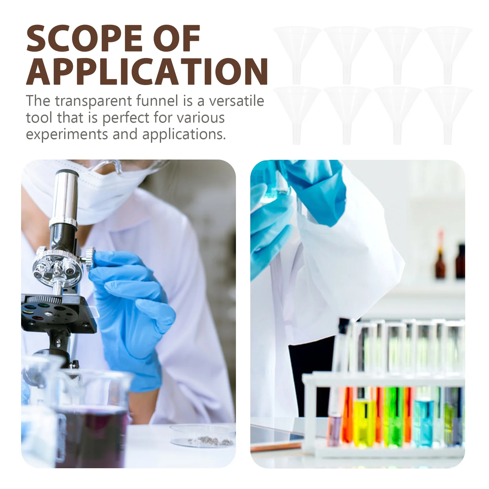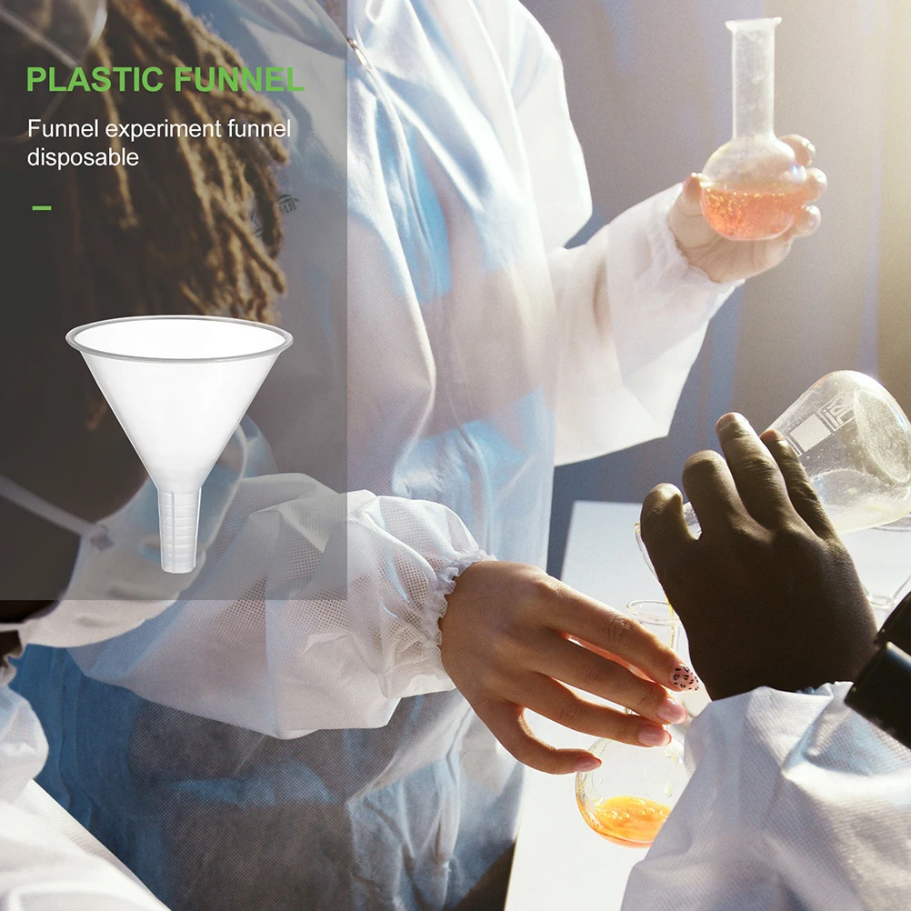 Funil transparente multiuso de plástico para laboratório, 20 peças, para experimentos, filtragem química, suprimentos de laboratório
