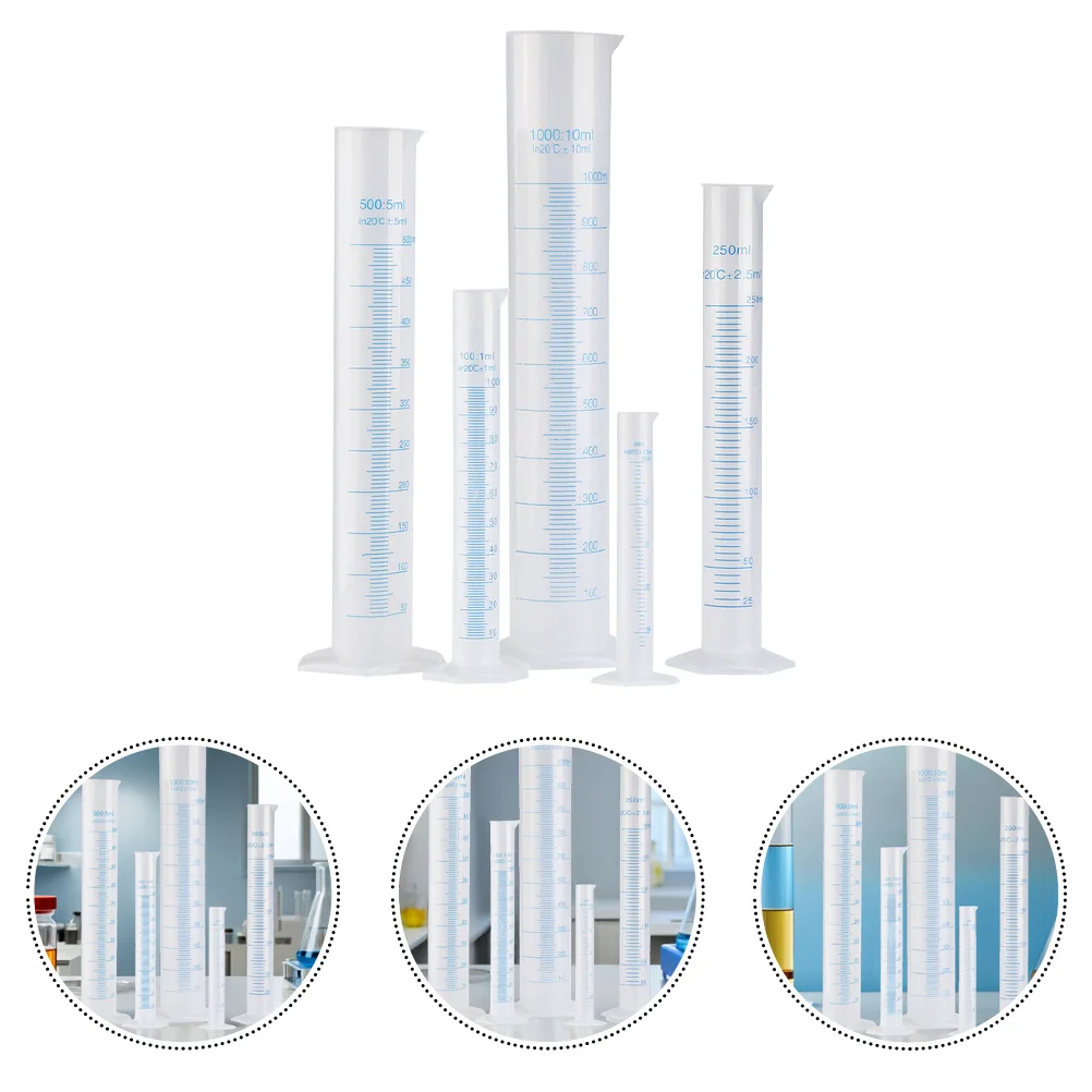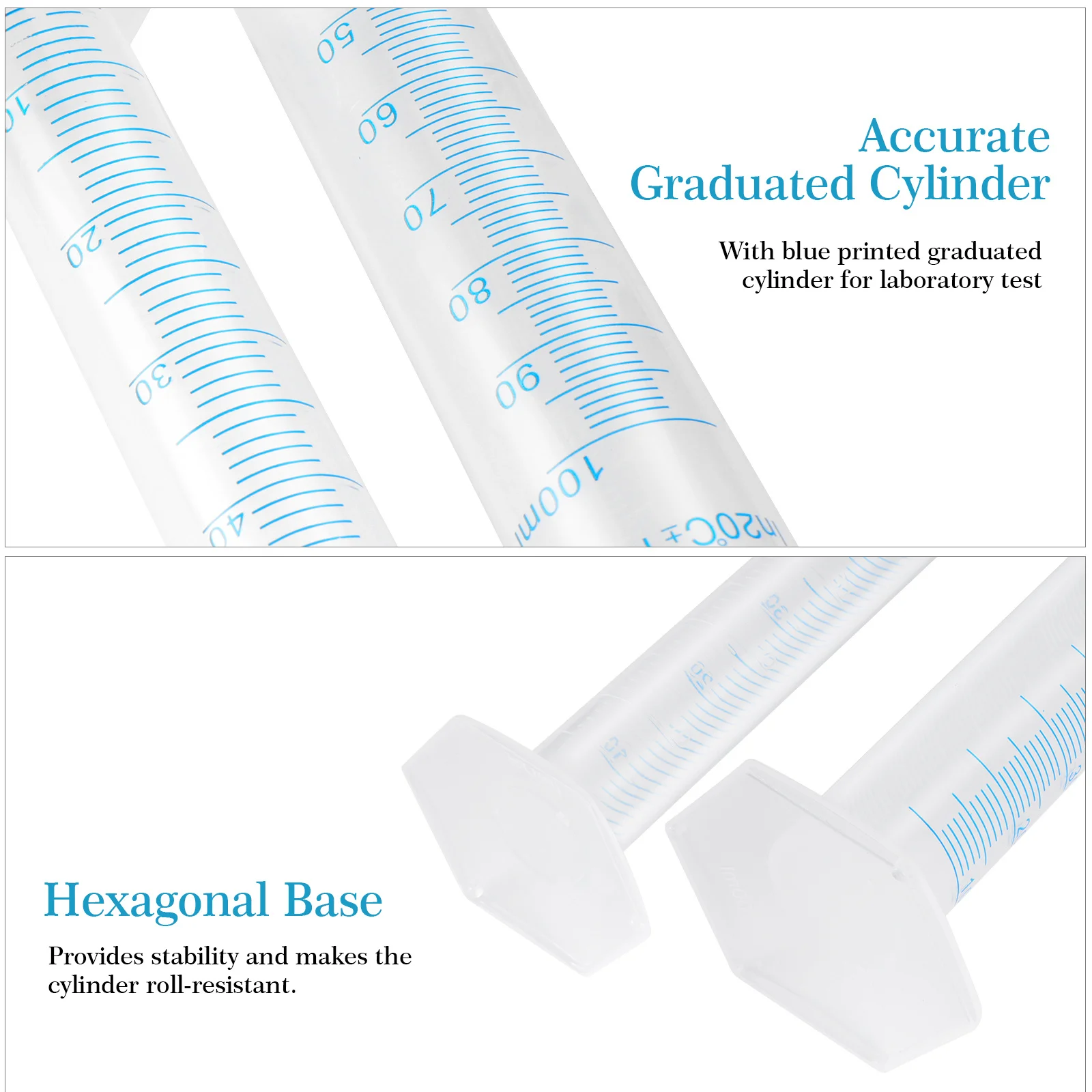 Conjunto de 4 Cilindros de Medição de Laboratório em Plástico Graduado 10ml 25ml 50ml 100ml, Material Transparente Seguro para Alimentos, Bico Cônico para Fácil Despejo