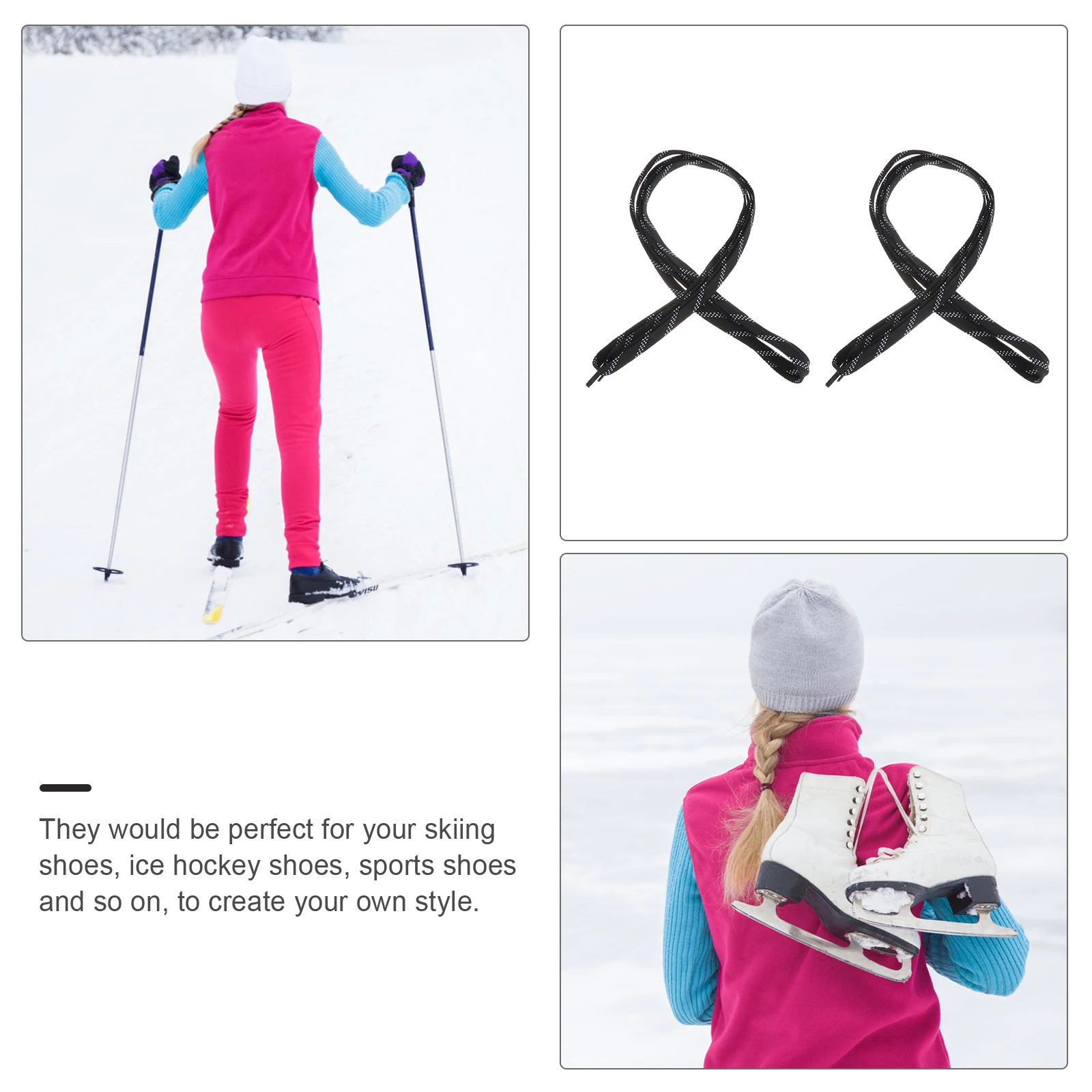 1 par de cadarços de skate de hóquei no gelo encados anticongelantes todas as laços de sapato para esqui hóquei preto 96 Polegada durável