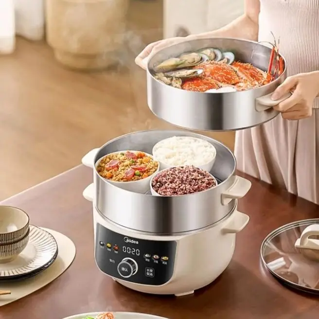 Vaporizador elétrico multifuncional doméstico, panela de vapor de três camadas, placa de vapor de aço inoxidável multicamadas, vaporizador elétrico