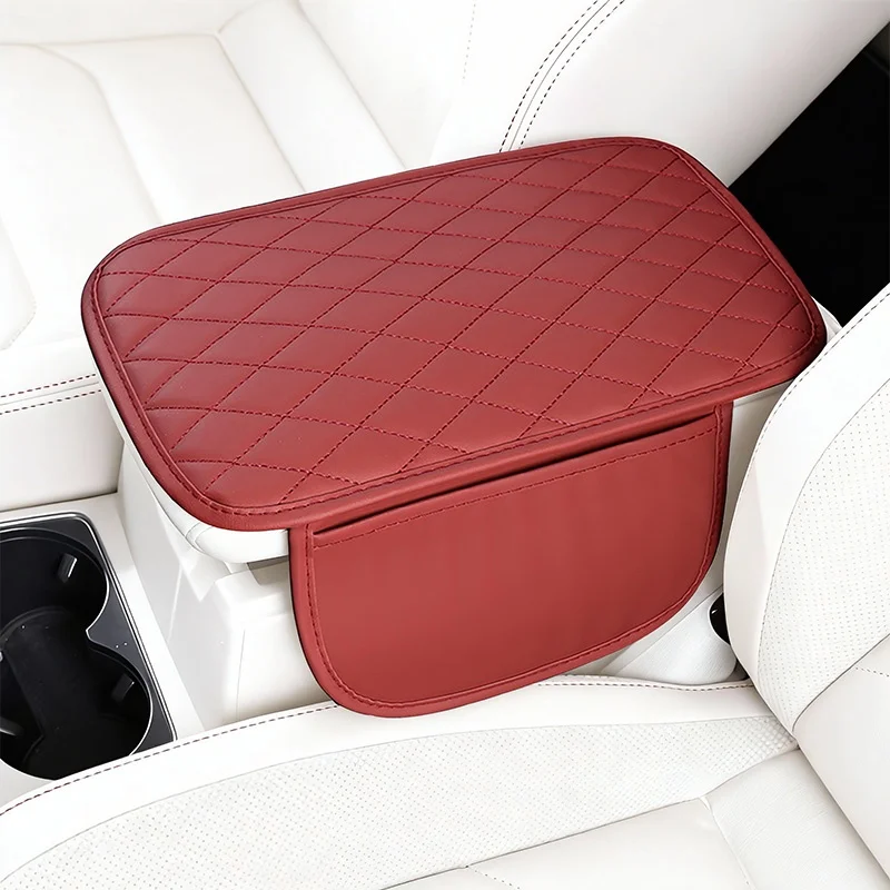 Almofada de apoio de braço para carro com grade de diamante de couro PU, proteção do console central, armazenamento de bolso duplo ou sem bolso