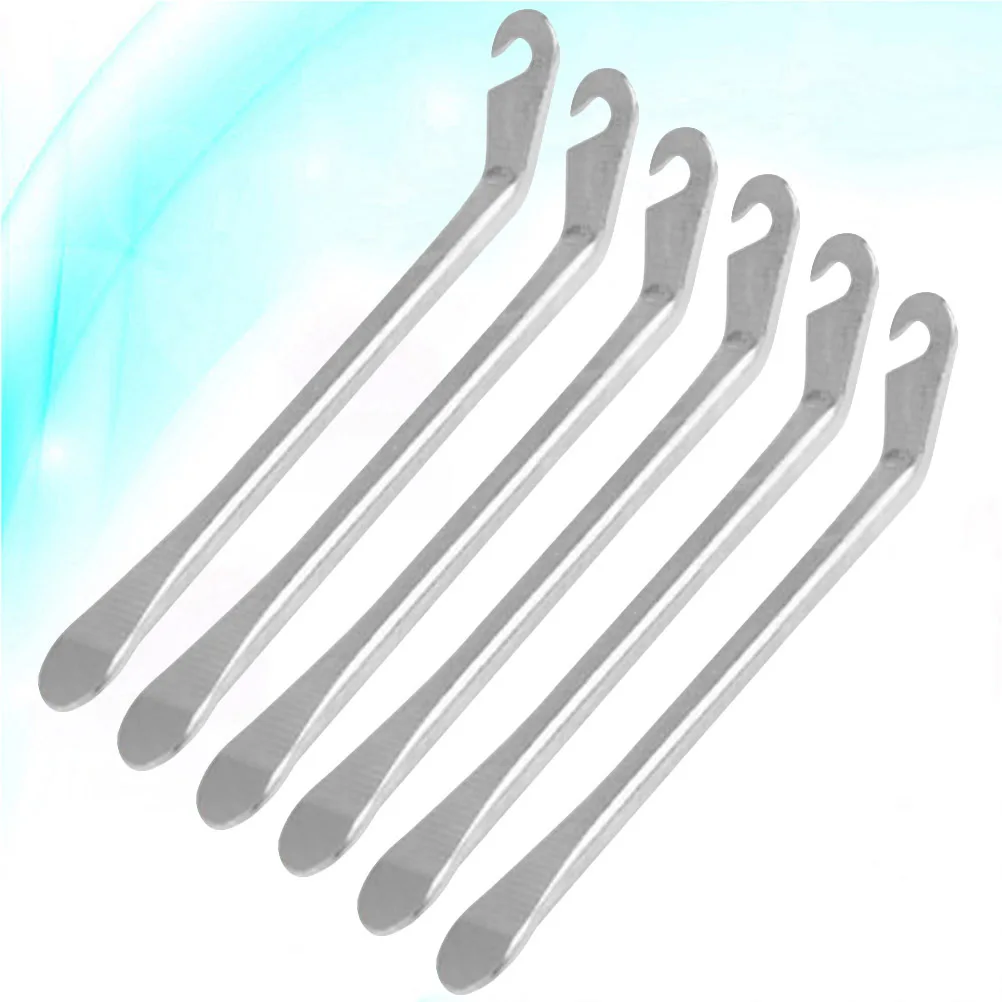 Alavancas de pneus de aço premium, 6 peças, ferramentas de reparo de bicicletas, borda curvada, segura para jantes, conjunto eficiente de remoção de pneus, alavancas de pneus curvadas
