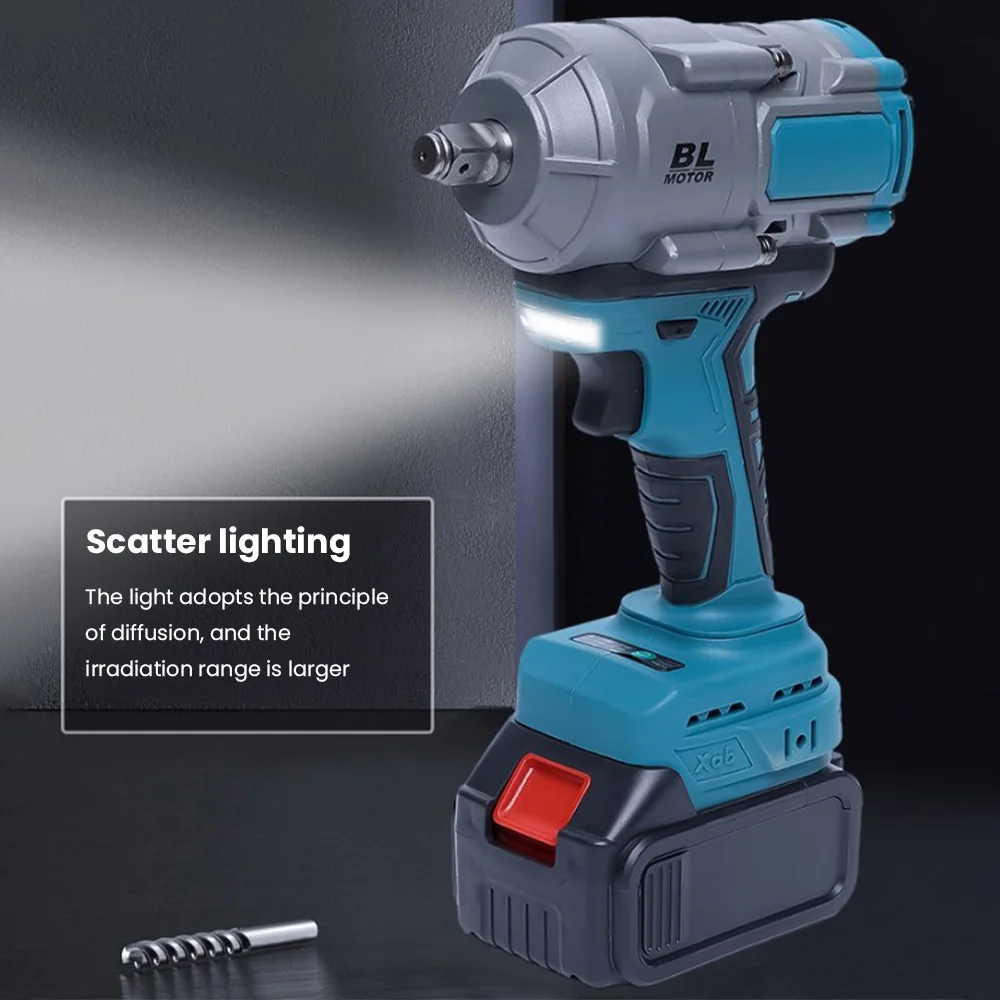 Chave de Impacto Elétrica Sem Escovas 980 Torque com Bateria de Lítio para Reparo de Pneus e Auto, Carregamento Rápido