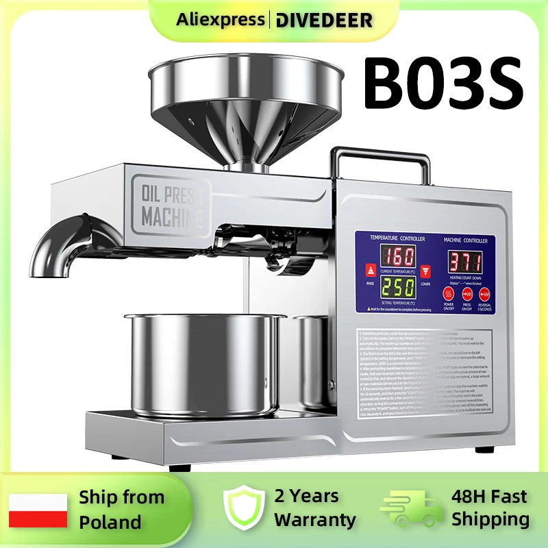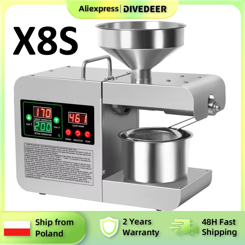 DIVEDEER X8S Imprensa de óleo inteligente automática doméstica de aço inoxidável máquina de extração de óleo quente e frio controle de temperatura gergelim