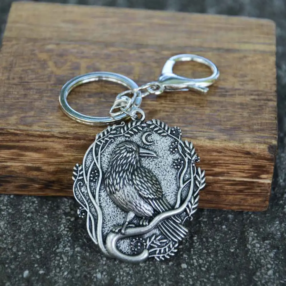 1 pçs nórdico odin corvo e ramo viking corvo chaveiro para chave faca do carro acessórios chaveiro amuleto jóias