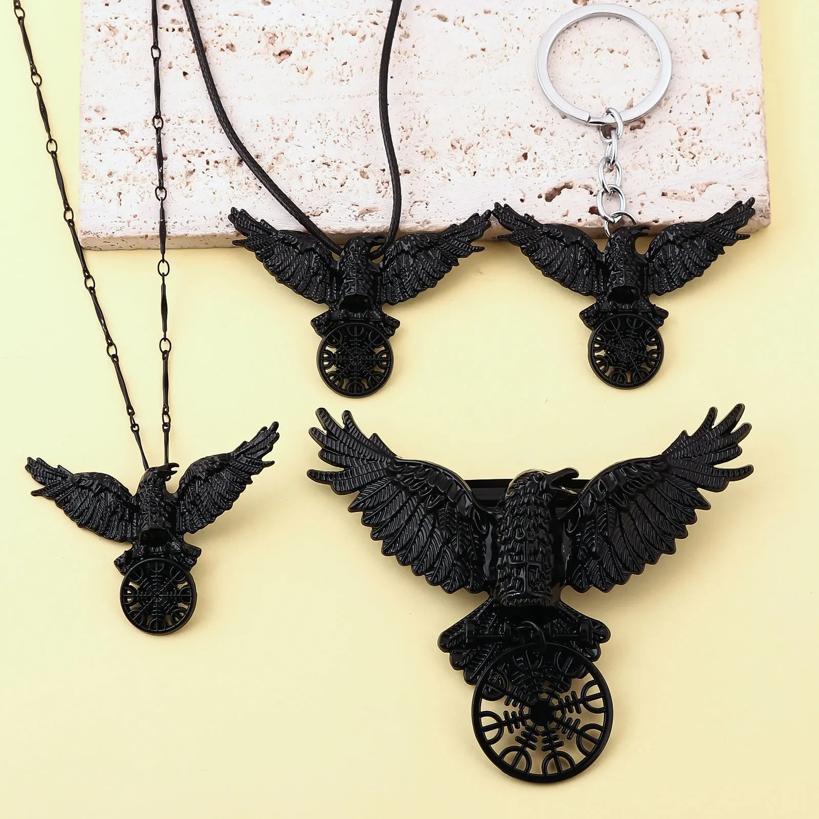 Vintage viking preto corvo colar odin corvo bússola runa pingente chaveiro para homens mulheres gótico hairpin hip hop punk jóias