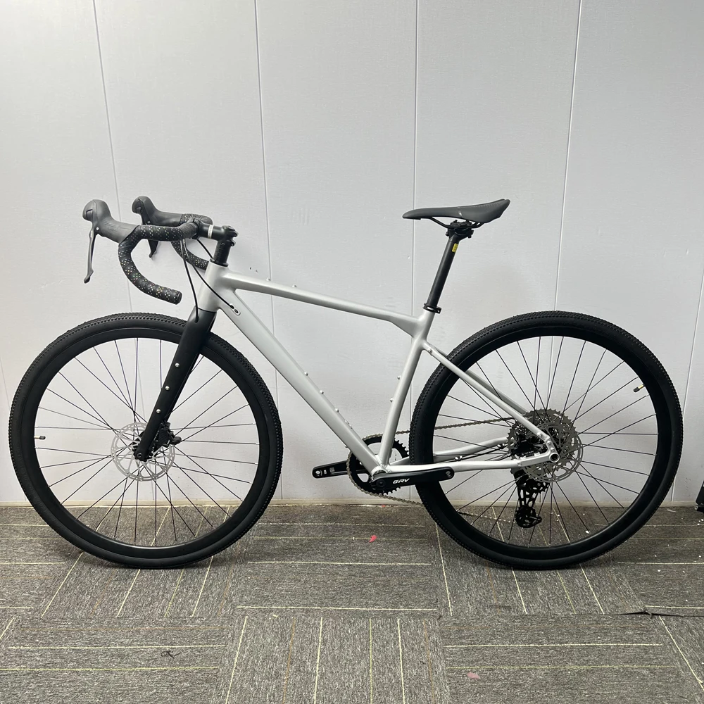 Quadro de liga de alumínio para bicicleta de cascalho, garfo de carbono através do eixo, freios a disco hidráulico, pedaleira oca de 10 velocidades, pneus 700x35c, bicicleta de estrada