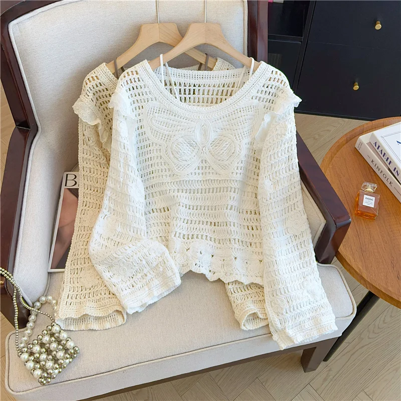 Primavera e verão novo estilo de férias chiffon top para mulheres com uma sensação de alta qualidade roxo protetor solar camisa de manga comprida