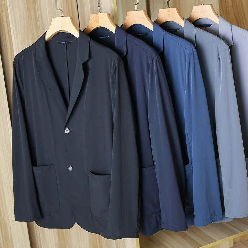 Tecido Tecnológico Ultraleve Masculino: Terno Casual de Verão com Elasticidade Quatro Direções, Proteção Solar, Leve e Moderno para o Estilo Urbano.