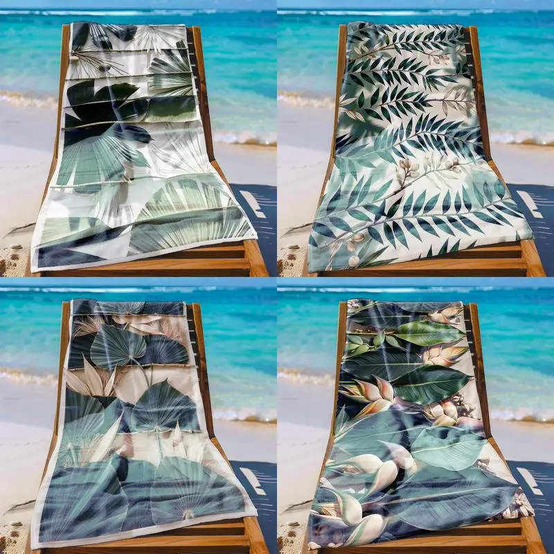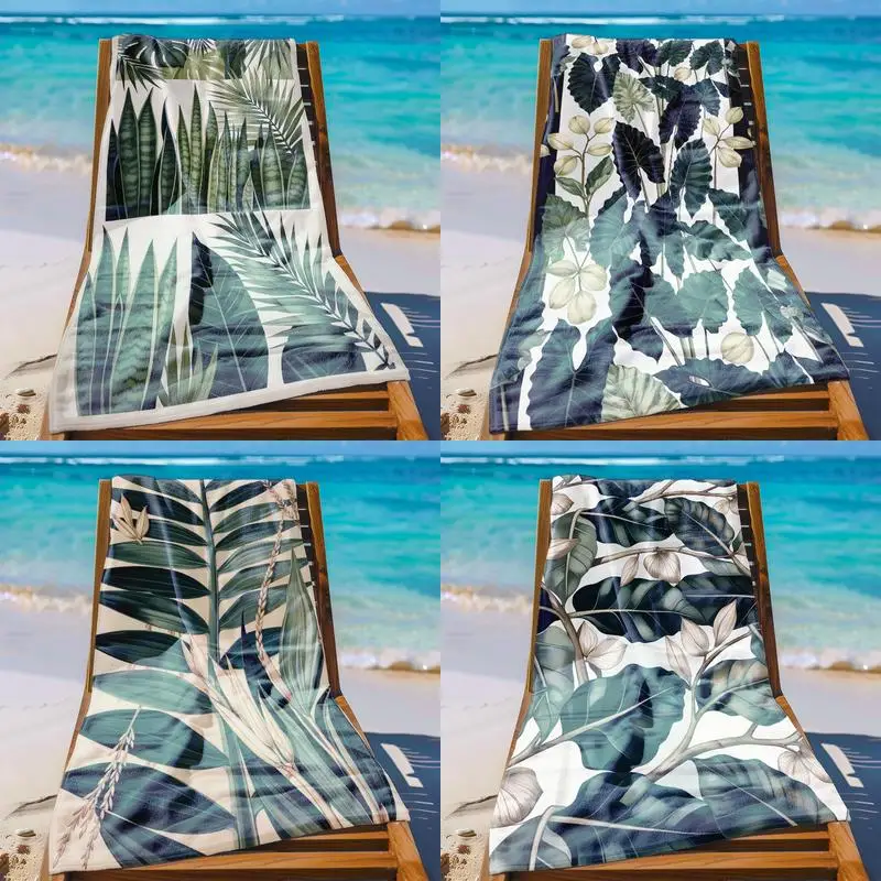 Toalha de praia com padrão de folhas tropicais, protetor solar e à prova de vento, adequada para piscina, camping, viagem, cobertor