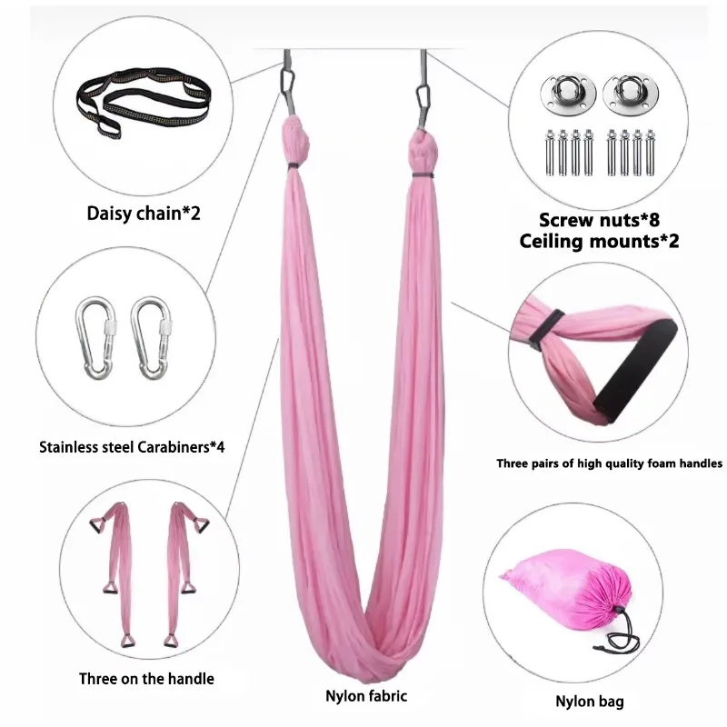 Exercícios de desempenho artístico fitness náilon pilates yoga balanço aéreo seda sedas voando rede conjunto dança cinta loop