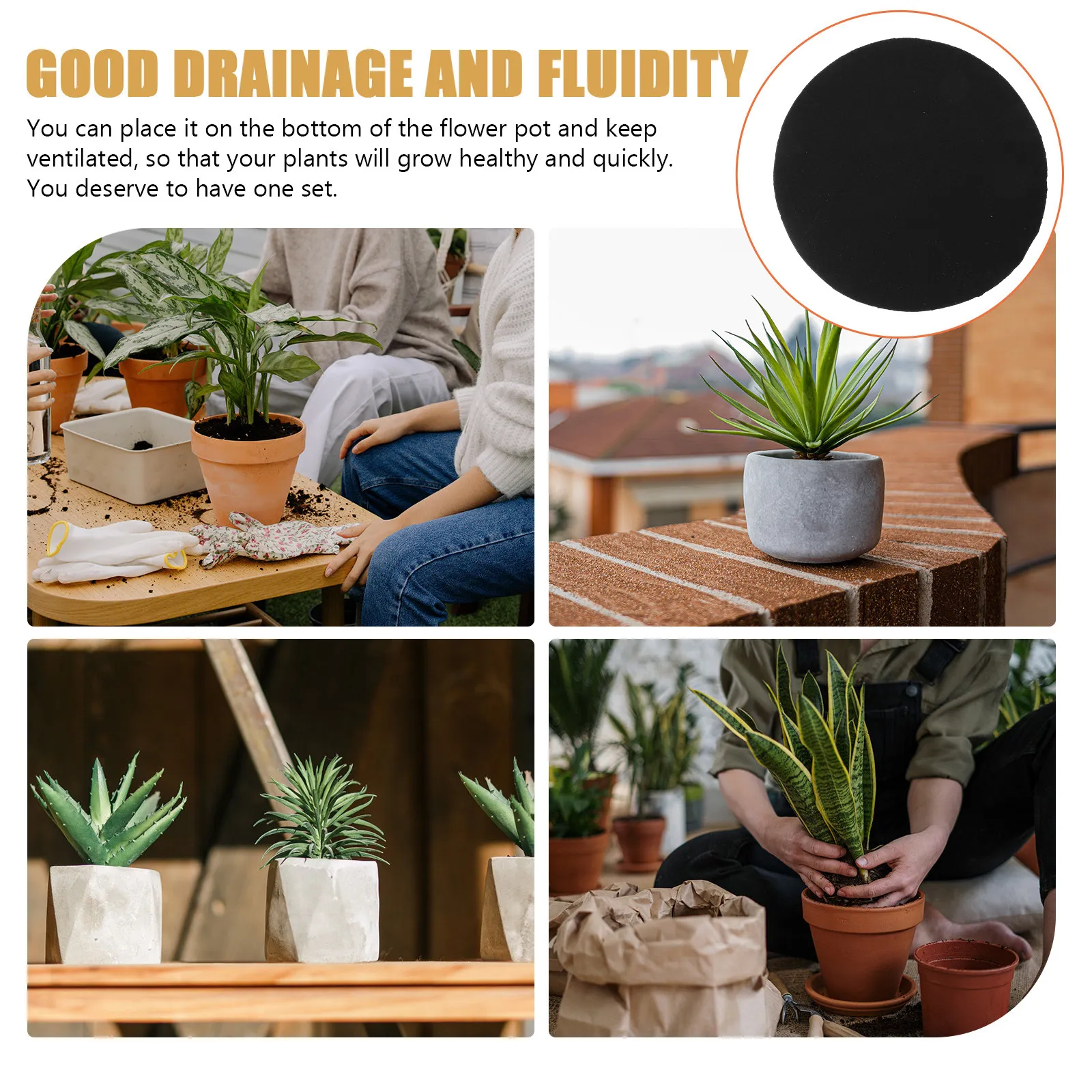 100 Peças de Almofadas Redondas Respiráveis para Fundo de Vaso, Gaxetas de Drenagem para Vasos de Plantas, Bonsai e Suculentas, Tapetes de Rede para Fundo de Vaso