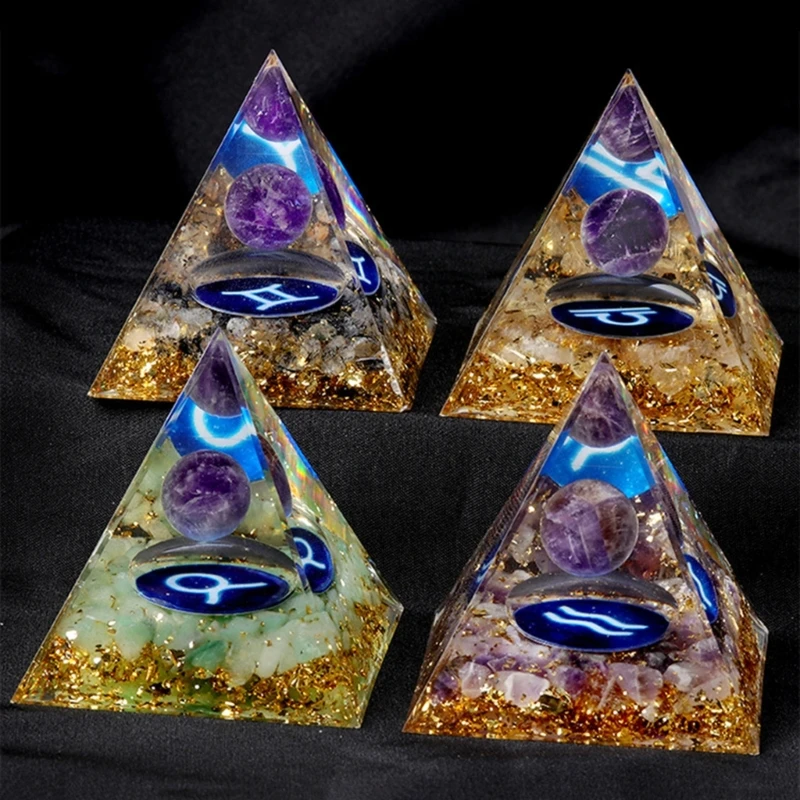 1pc pirâmide de orgone esfera de quartzo transparente obsidiana orgonite, ornamento de pirâmide resina de obsidiana, ornamentos artesanais de mesa para casa