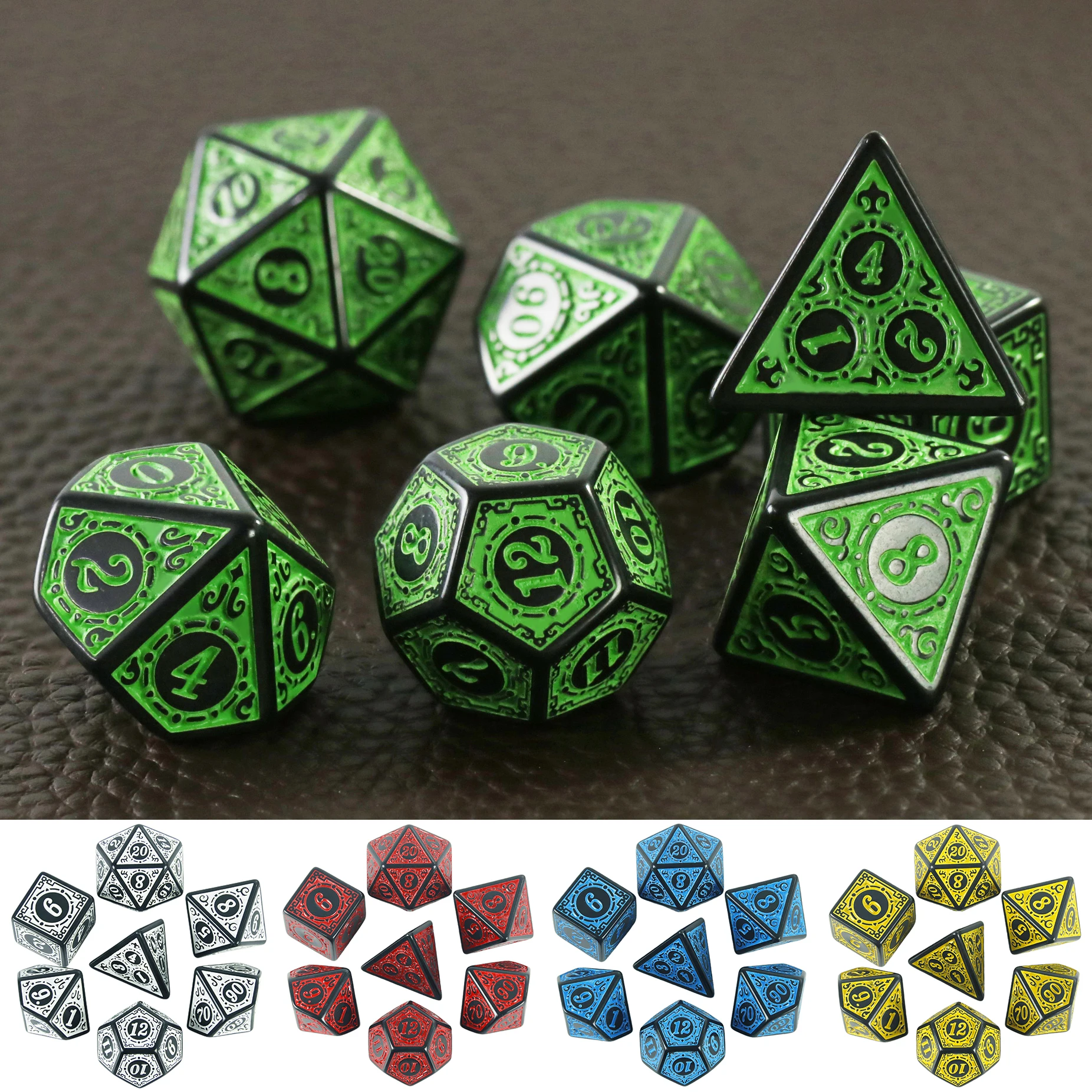 Conjunto de dados mnd, dados poliédricos, conjunto de dados de plástico de alta qualidade, padrões exclusivos, estilos de fonte retrô incríveis para jogos de dramatização