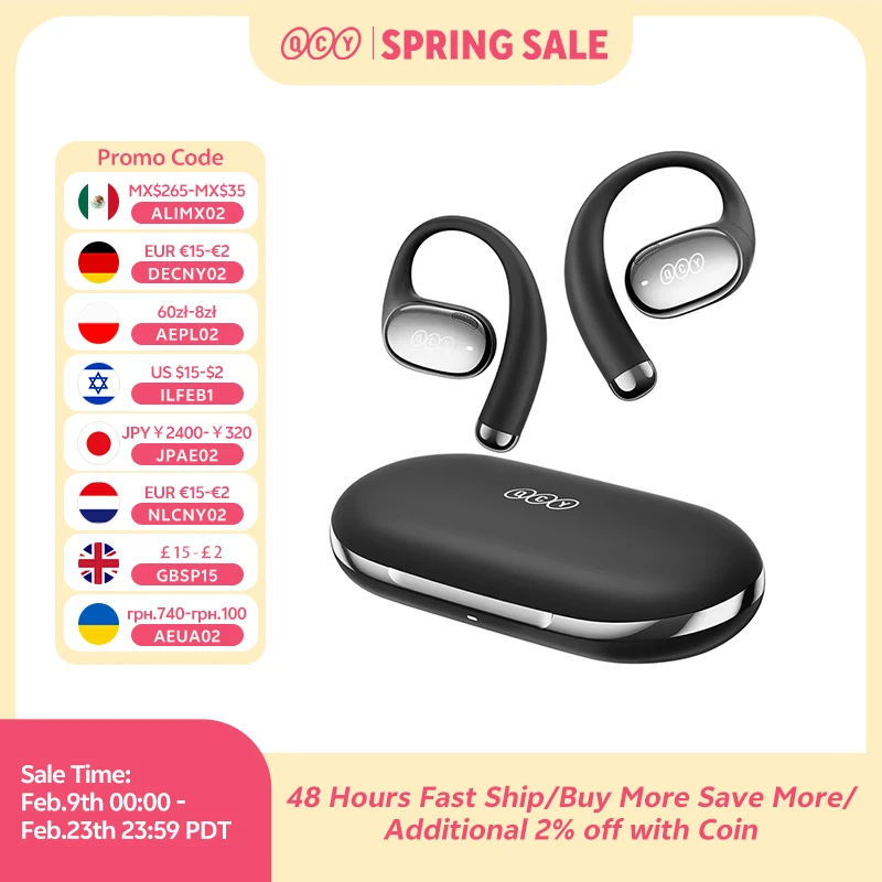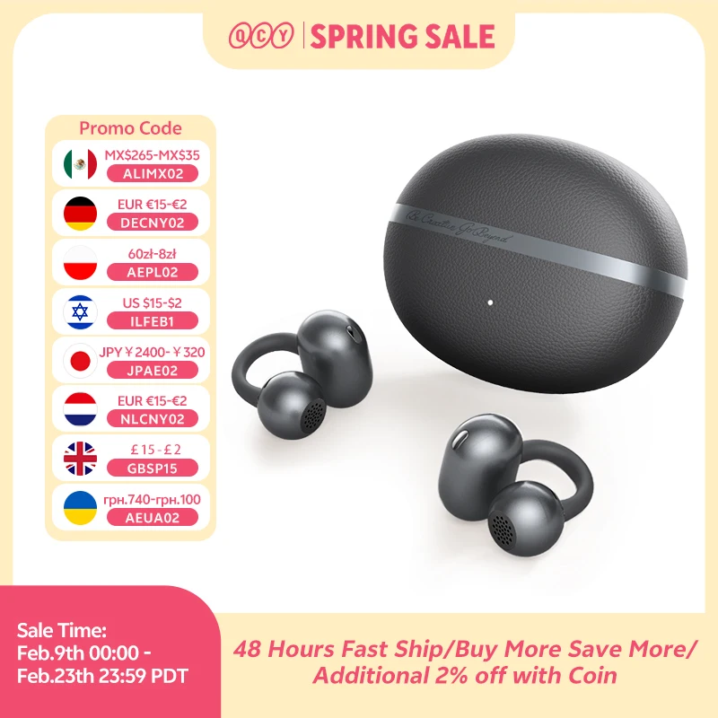 QCY Crossky C50 CT06 Fones de ouvido sem fio abertos Bluetooth 6.0 Ultra-confortáveis com clipe para chamadas IA, reforço de graves, controle de volume adaptável, 35 horas de reprodução, esportes, corrida
