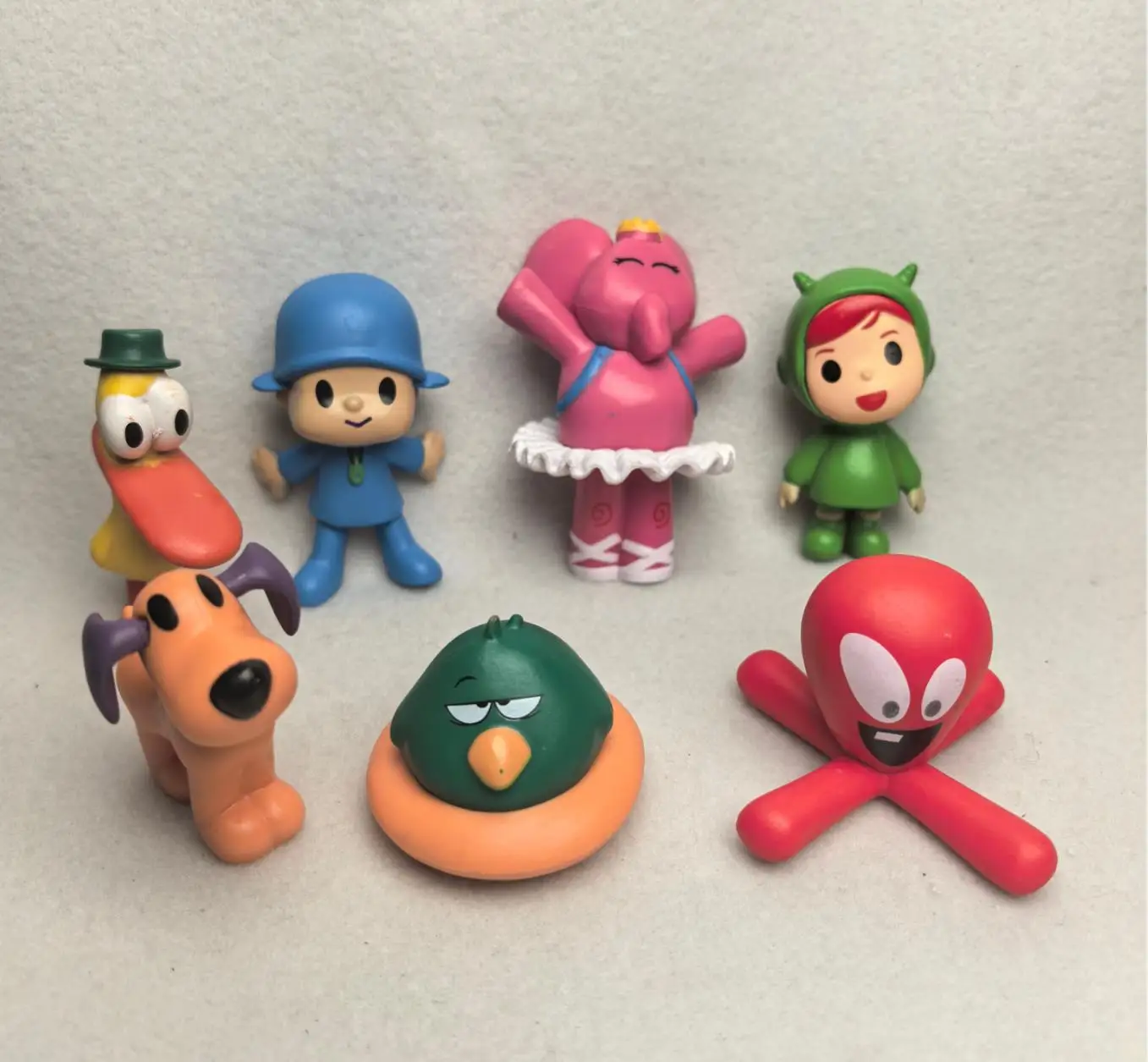 7 pçs/set pocoyo animal brinquedo pássaro pato elefante boneca modelo cena ornamentos anime dos desenhos animados bonito figuras de pvc brinquedos