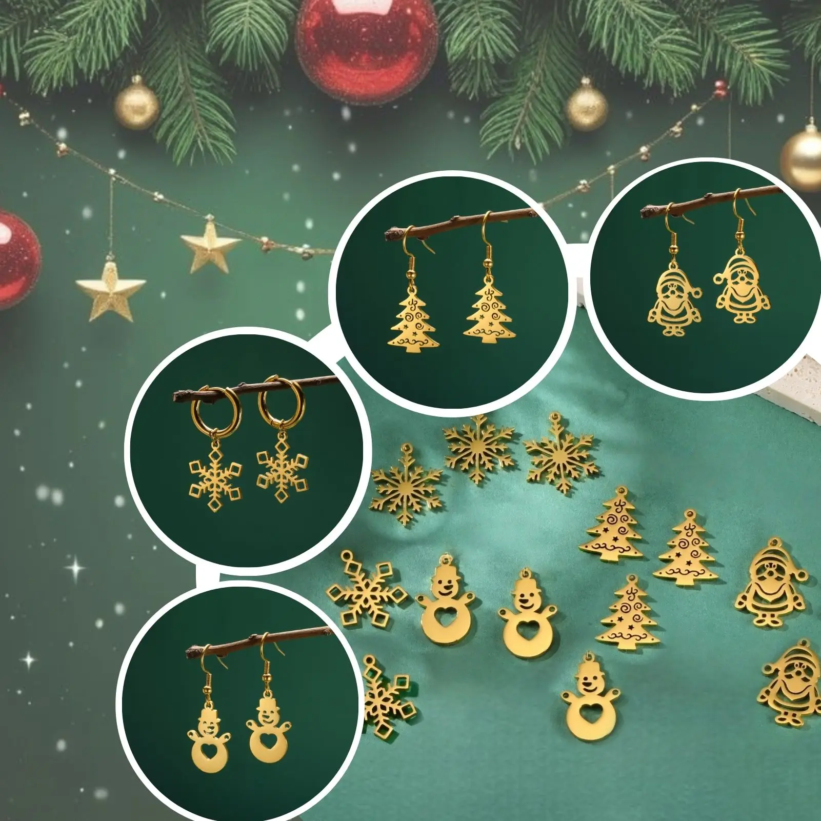 3 pçs floco de neve de natal santa boneco de neve árvore pingente colar jóias de aço inoxidável para mulheres presentes masculinos