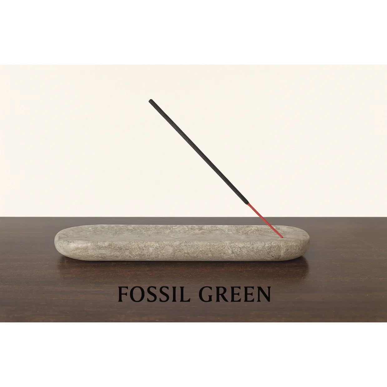 Porta-incenso oval em mármore natural verde fóssil 🪨 24,5 × 4,5 × 2 cm | Feito à mão na Itália 🇮 🇹 | Queimador de varas de incenso | Acessório decorativo para casa e bem-estar - Criações Kalu