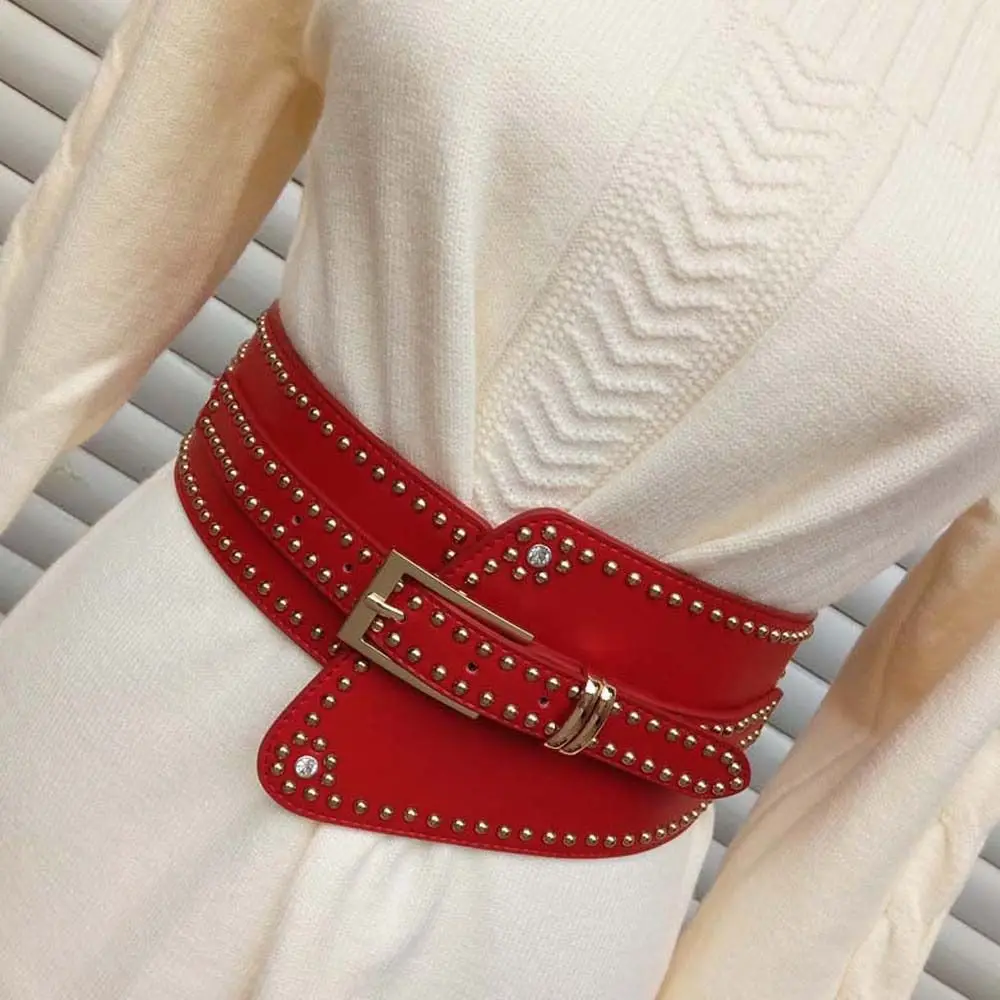 Retro quatro fivelas moda chuva decorativa feminino ampla cinto elástico parecer magro usar fora cintura espartilho para senhoras