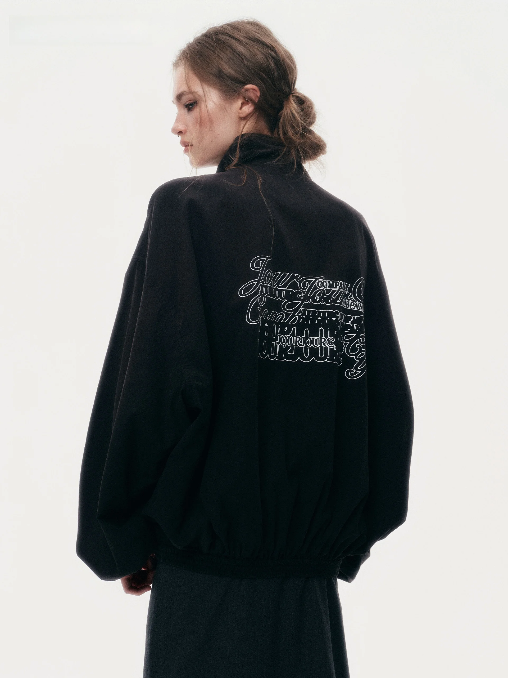 Jaqueta Esportiva Retro de Algodão Lyocell com Gola Alta e Caimento Solto JOURJOUR com Fechamento por Zíper