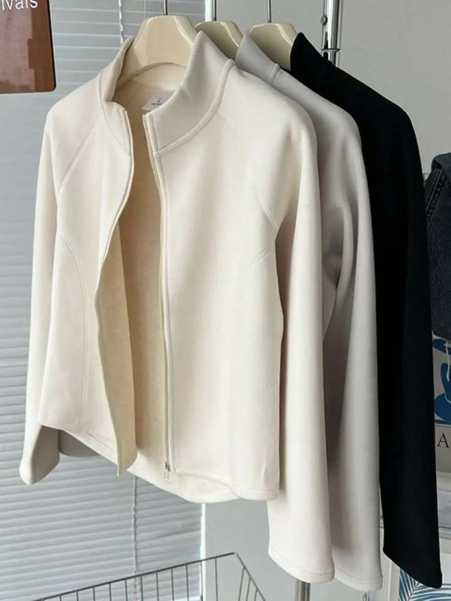 Jaqueta Fena Curta de Mole com Zíper, Aquecimento de , Ajuste Slim, Dupla Face de Lã, Manga Longa ssa, Cor S...