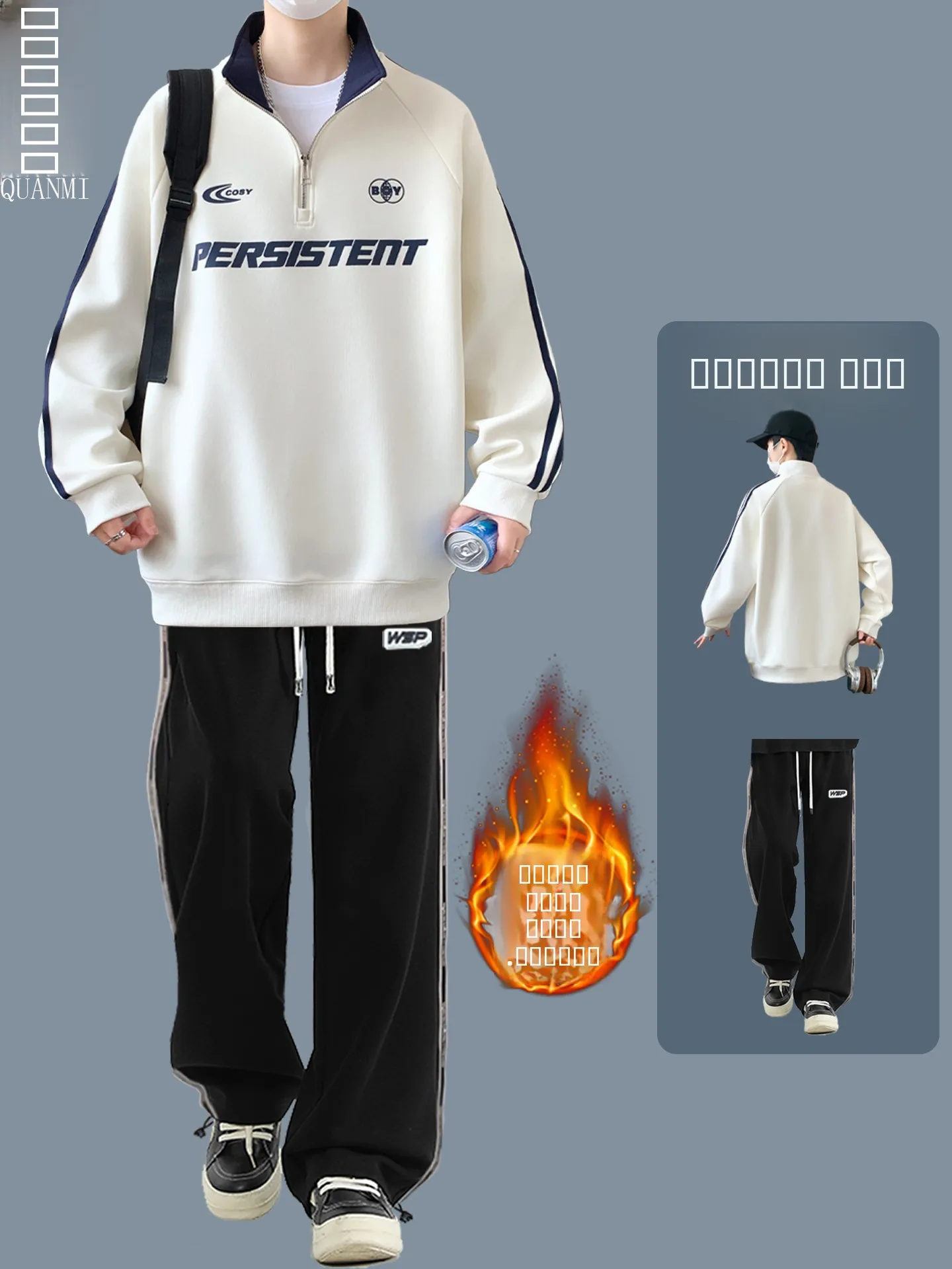 Conjunto de Moletom com Capuz para Meninos e Adolescentes, Outono/Inverno, Duas Peças, em Mistura de Algodão e Poliéster