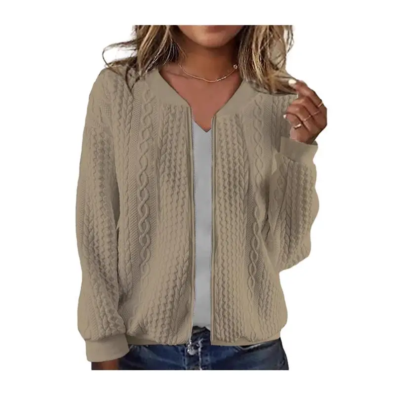 Jaqueta Casual com Zíper e Design Torcido para Mulheres, Manga Longa, Cor Sólida, Moda com Design Torcido