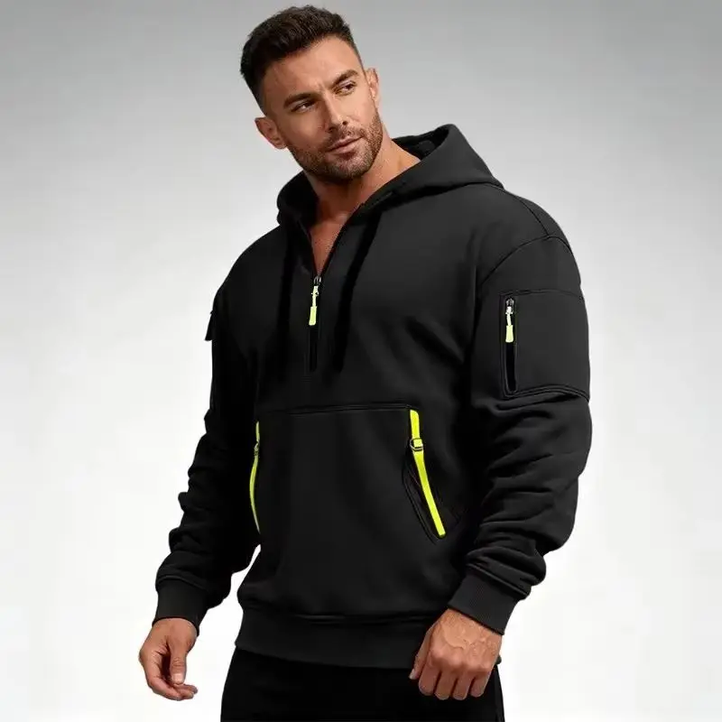Tamanho europeu plus size casual primavera e outono moletom com capuz masculino pulôver zíper bolso esportivo grande moletom com capuz 2025 maré