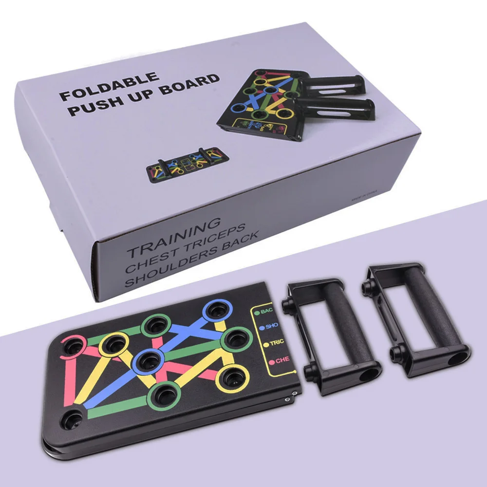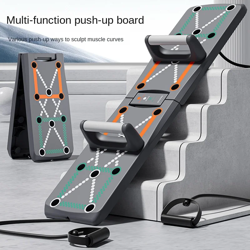 Conjunto de prancha push-up multifuncional portátil com alças, equipamento fitness dobrável para treinamento de peito, abdômen, braços e costas.