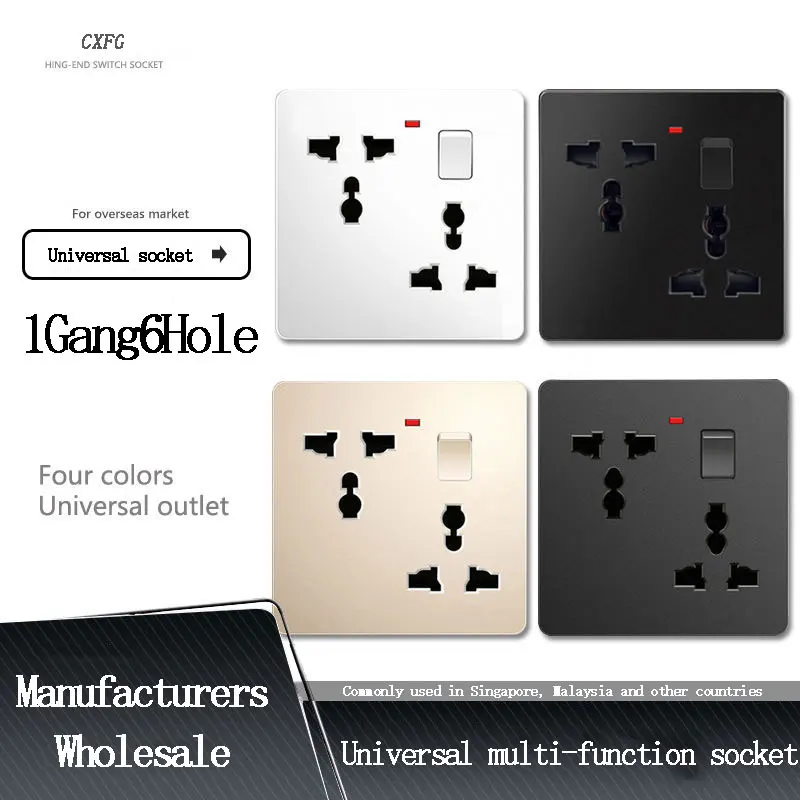 Parede doméstica oculta britânica 86, multifuncional, universal, 1gang, com painel de soquete do reino unido, deslocamento, seis furos, oblíquo, 6 pinos