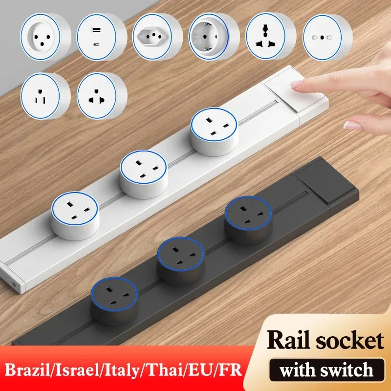 Soquete de trilho de energia de parede elétrica com interruptor adaptador móvel plugue usb ue eua brasil israel itália padrão superfície pista soquete