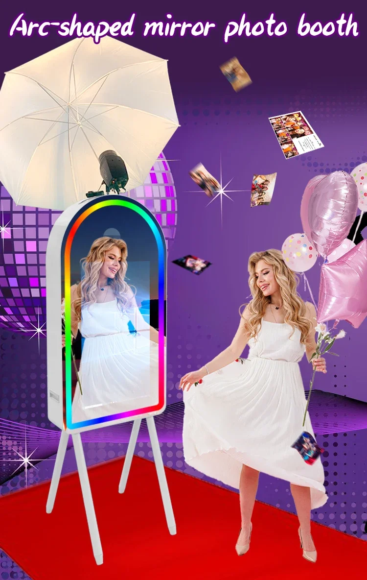 Cabine fotográfica com espelho mágico de 70 polegadas, tela sensível ao toque de 32 polegadas, mini pc portátil, cabine fotográfica, máquina de selfie para festas e eventos