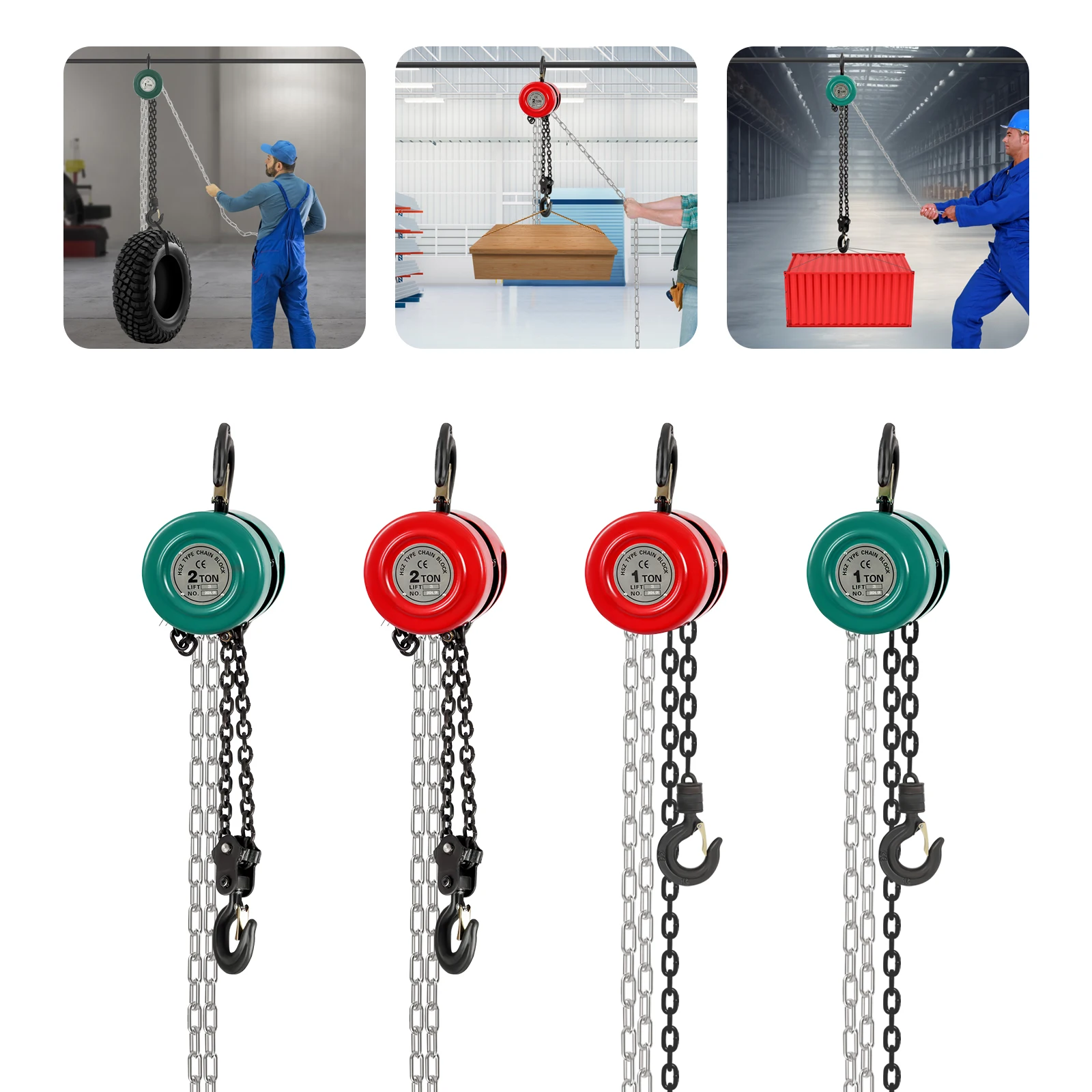 Talha de corrente manual, talha de corrente, ferramenta de levantamento manual de talha de corrente manual com 360 ° Capacidade de levantamento do gancho 1T/2T
