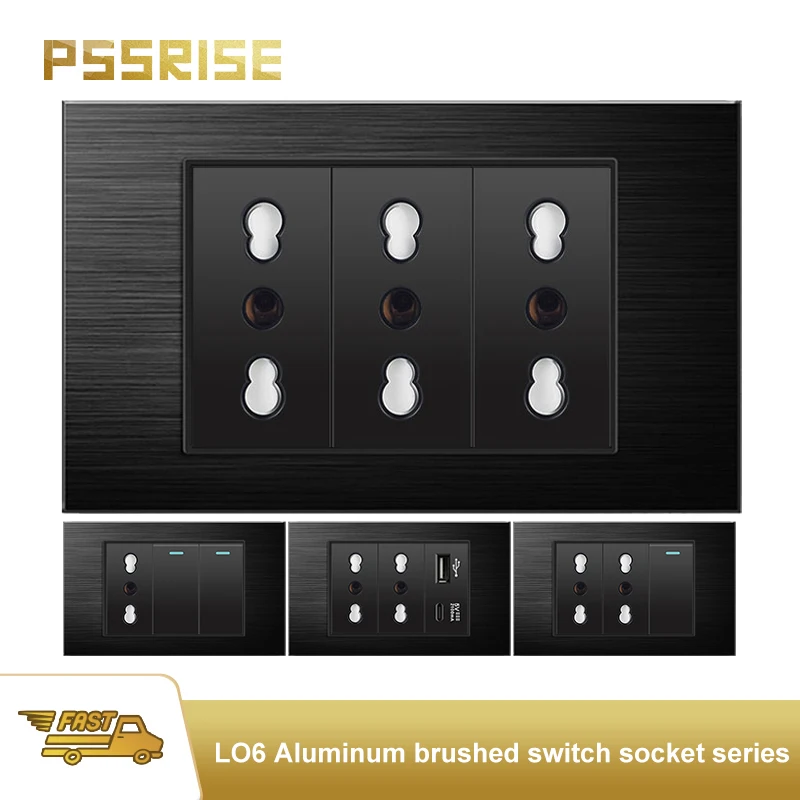 UE metal soquete de alimentação, LED, 1 gang, 2 gang, On Off interruptor da lâmpada, tomadas de parede francês, USB tipo-c tomada, caixa redonda, cinza prata