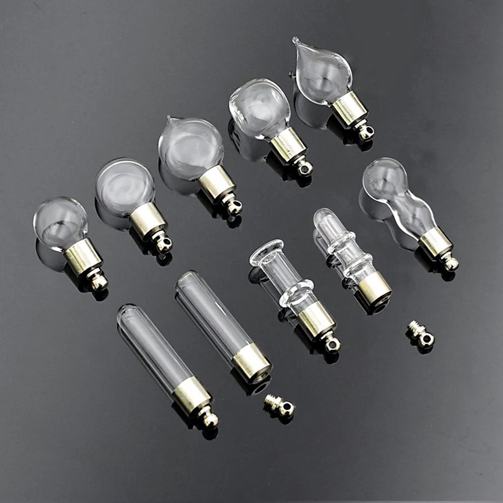 10 peças tampa de parafuso frasco de vidro pingente em miniatura desejando garrafa de óleo claro charme nome na arte do arroz mini garrafa de vidro artesanato materia