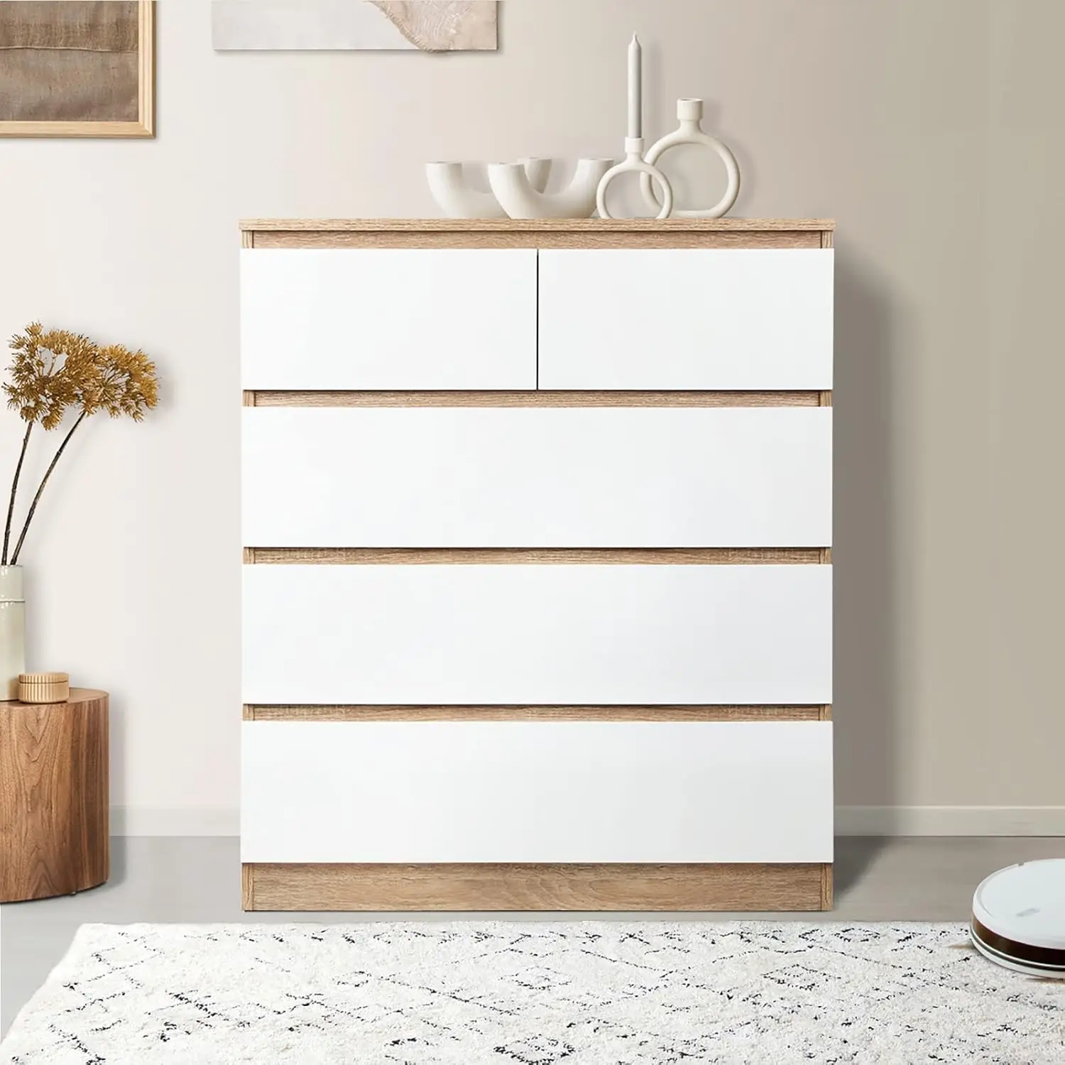 # Cômoda de Madeira Estilo Creme com 4/5 Gavetas para Sala de Estar, Armário Simples e Moderno