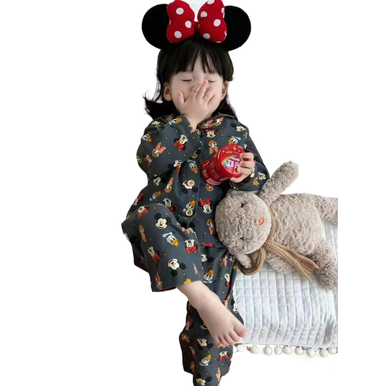 Crianças pijamas terno outono inverno estilo coreano nova chegada menina dos desenhos animados mickey printlong sleevescardigan casa